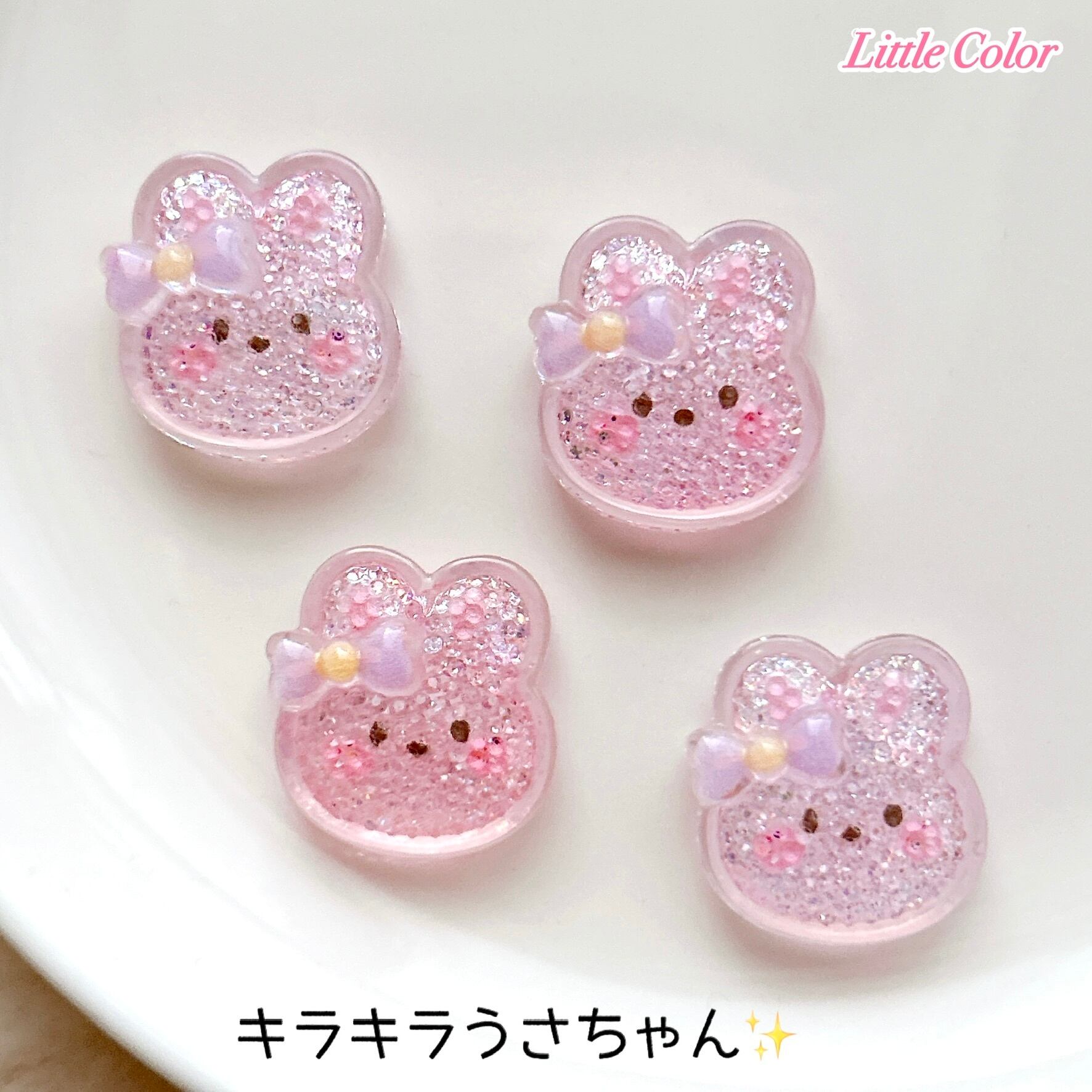 【4個】キラキラうさちゃん デコパーツ ライトピンク うさぎ / ハンドメイドパーツ 動物パーツ ウサギ 夏 クリア(B23)