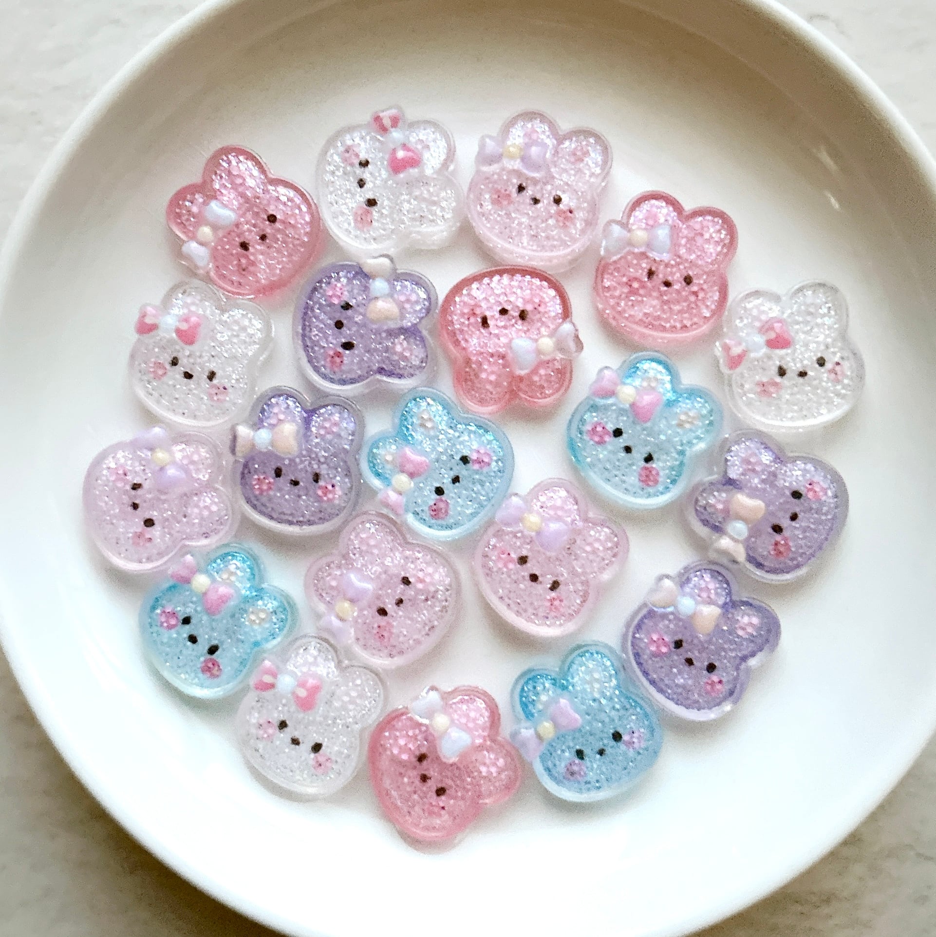 【4個】キラキラうさちゃん デコパーツ ホワイト うさぎ / ハンドメイドパーツ 動物パーツ ウサギ 夏 クリア(B20)