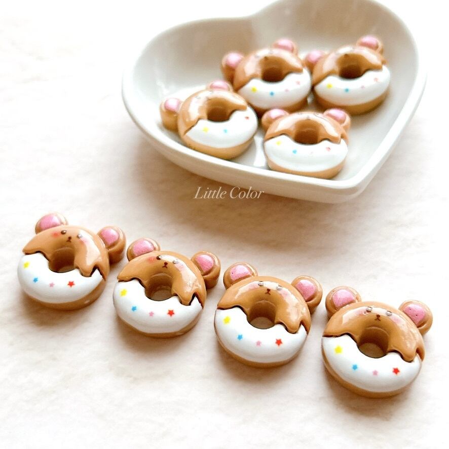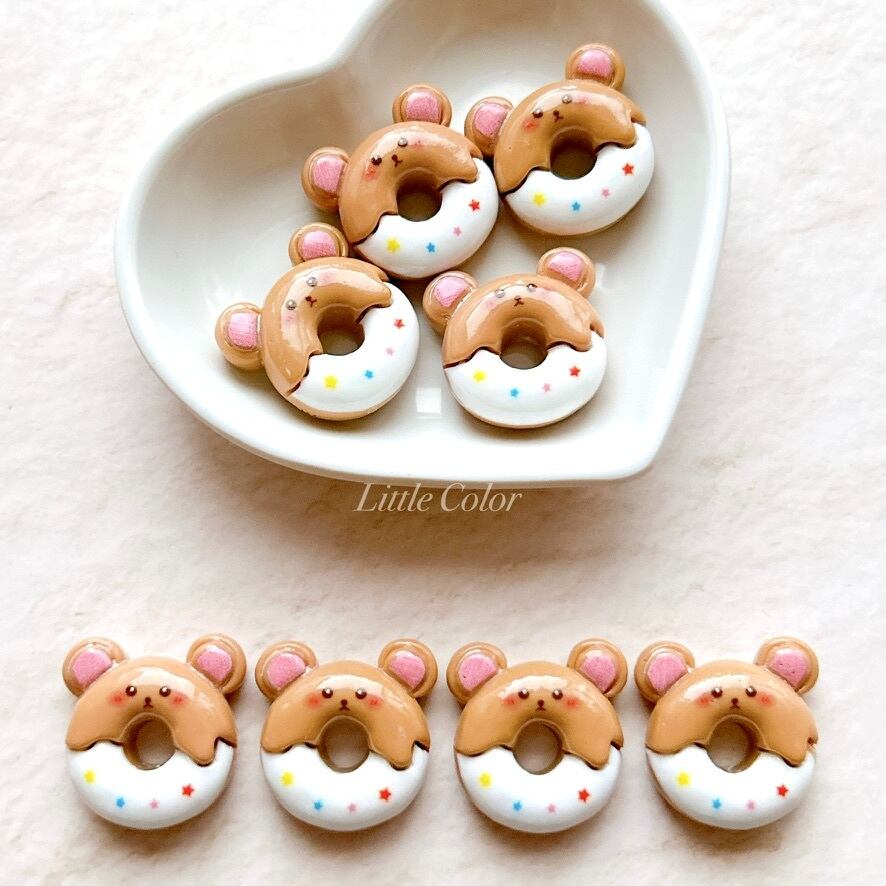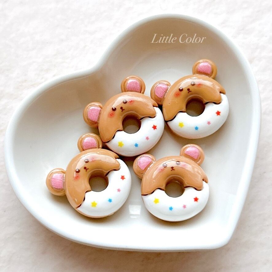 クマさんドーナツのデコパーツ 4個セット / くま ハンドメイドパーツ 動物パーツ 食べものパーツ(A51)
