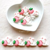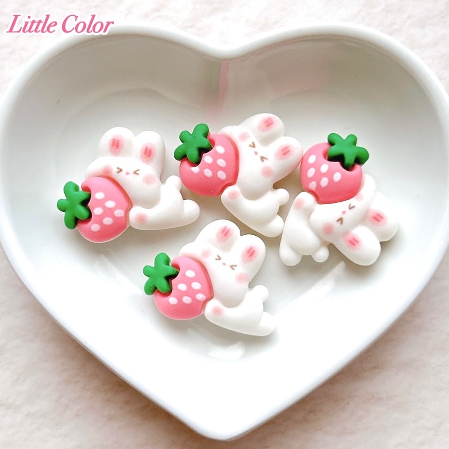 ピンク いちごスライディングキャッチうさぎのデコパーツ 4個セット / ウサギ ハンドメイドパーツ 動物パーツ(A49)