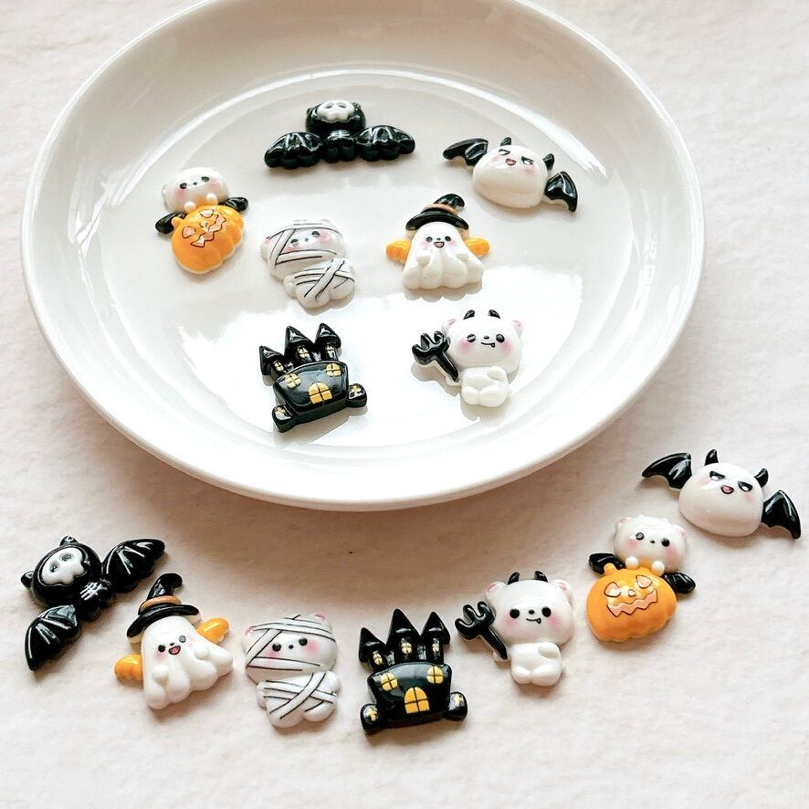 モノトーンくまさんのハロウィン デコパーツ 7個セット/ハンドメイドパーツ カボション クマ カボチャ(E25)