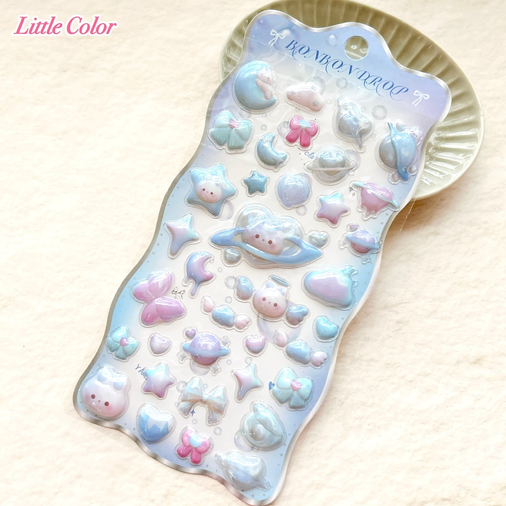 【立体シール】3D ゆめかわ 宇宙 うさぎ / ぷっくり ぷくぷくシール