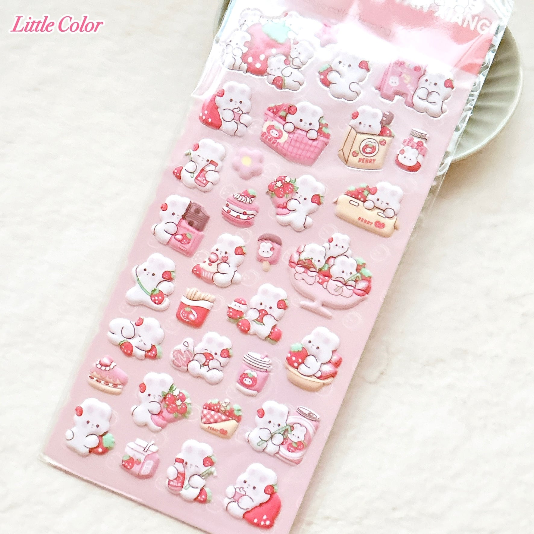【立体シール】3D イチゴうさぎのバブルシール ストロベリージュース / ぷっくり ぷくぷくシール ウサギ