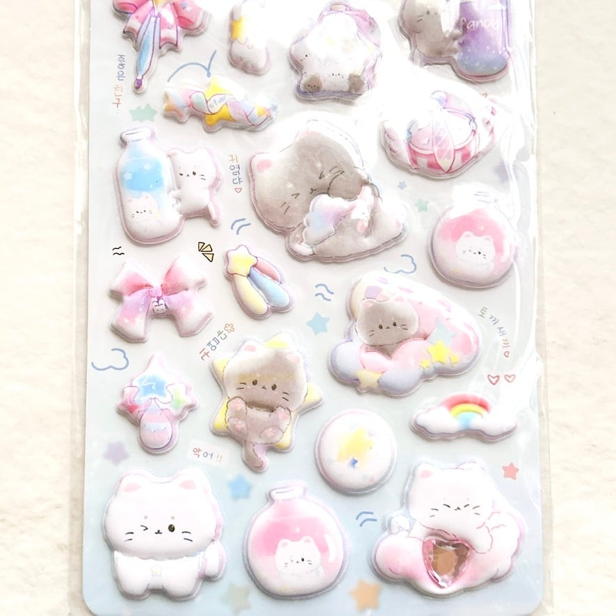 【立体シール】3D シール Fantasy Star ネコ キラキラパーツ入 / ぷっくり ぷくぷくシール