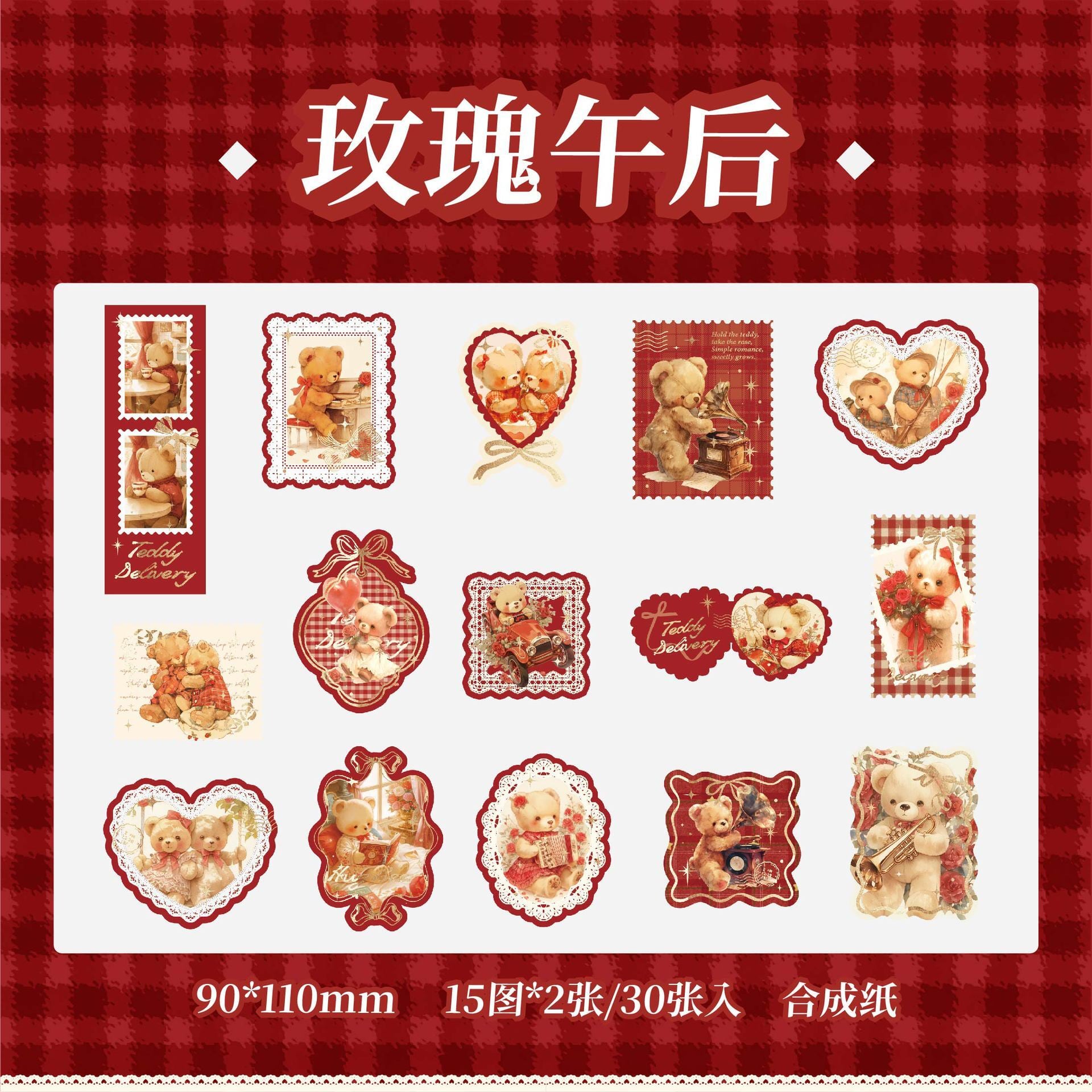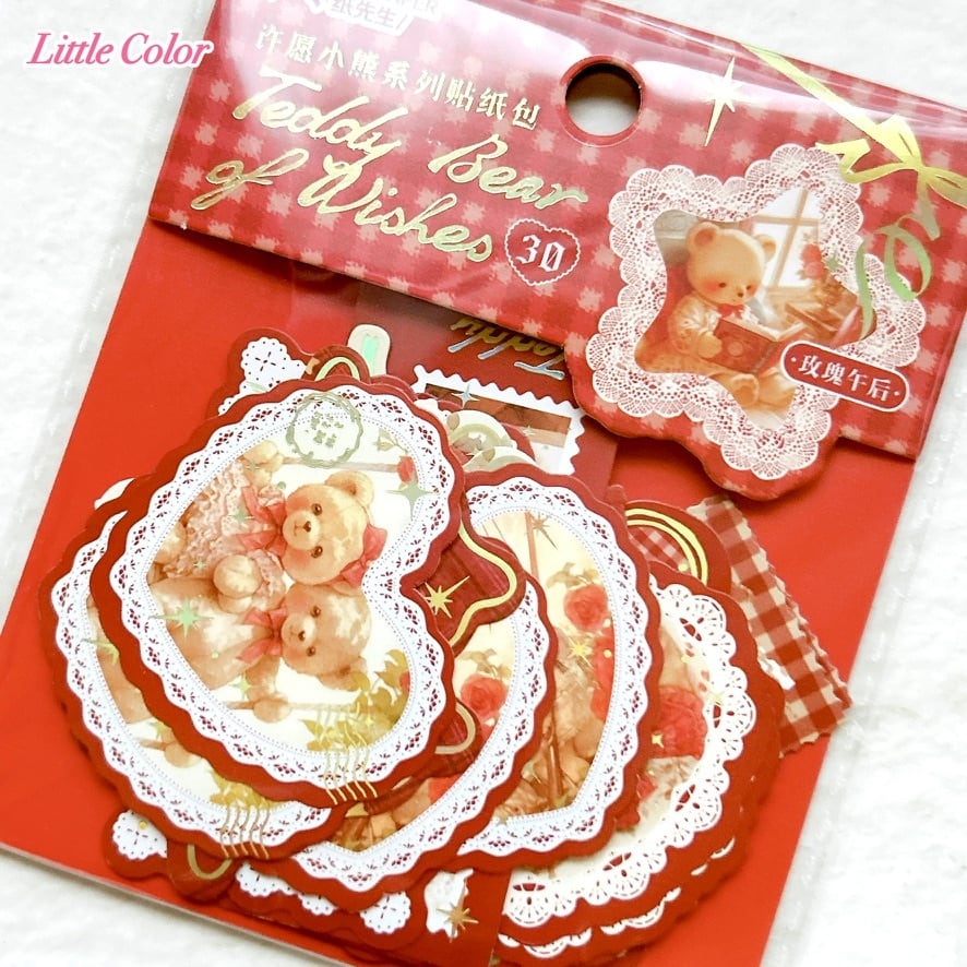 【手帳デコ】テディベアのフレークシール Teddy Bear of Wishes レッド / コラージュ素材 海外ステッカー くま クマ