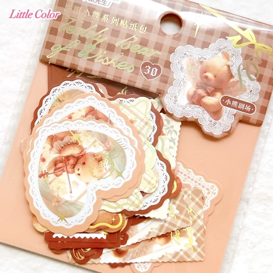 【手帳デコ】テディベアのフレークシール Teddy Bear of Wishes ブラウン / コラージュ素材 海外ステッカー くま クマ