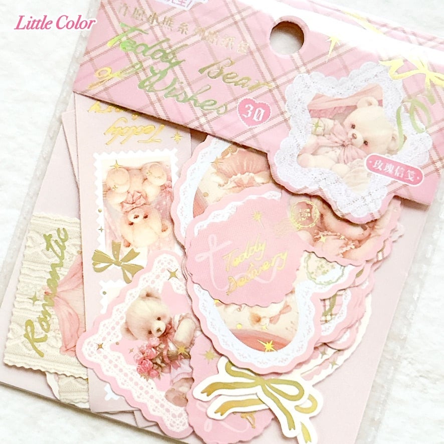 【手帳デコ】テディベアのフレークシール Teddy Bear of Wishes ピンク / コラージュ素材 海外ステッカー くま クマ