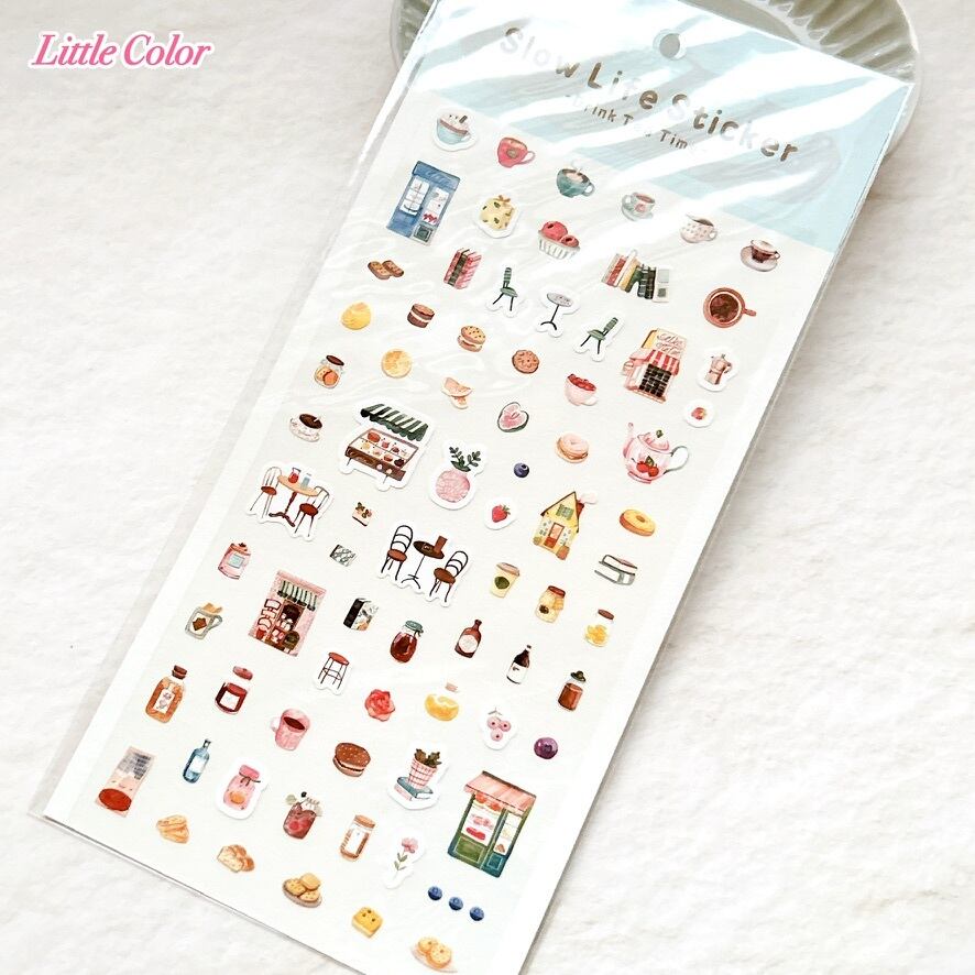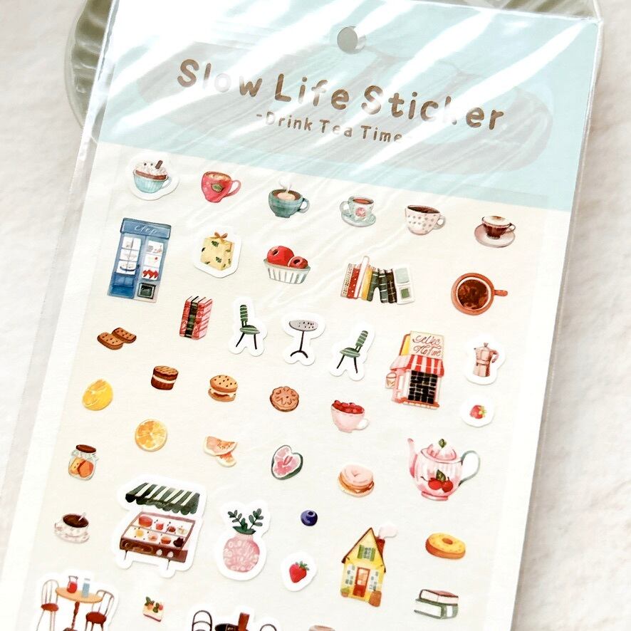 【手帳デコ】スローライフステッカー Drink Tea Time / 海外シール コーヒー カフェ スイーツ 食べ物シール