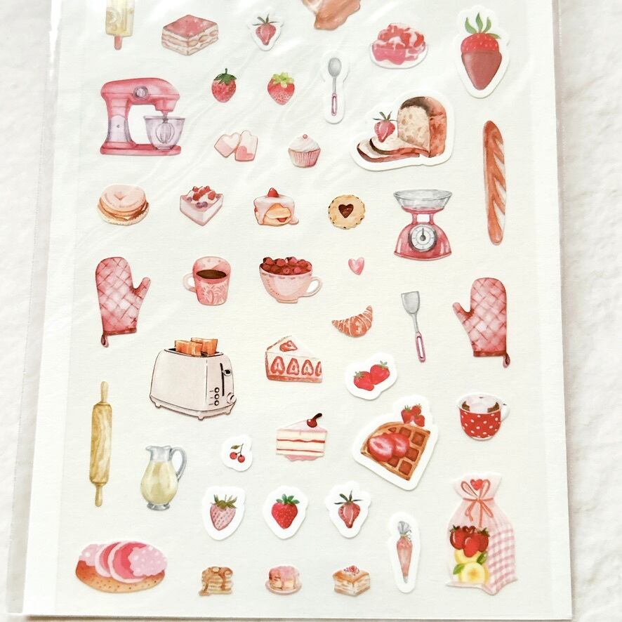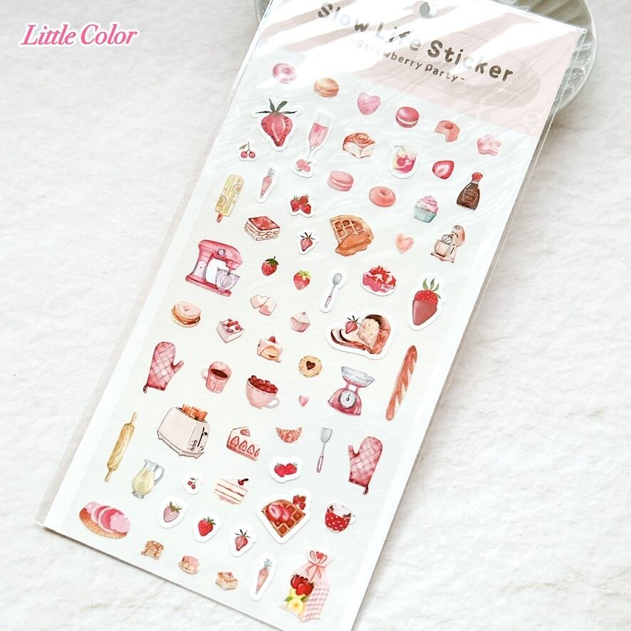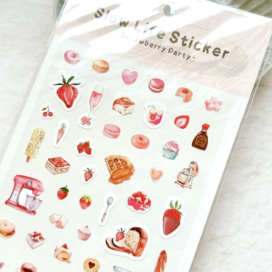 【手帳デコ】スローライフステッカー Strawberry Party / 海外シール ストロベリー スイーツ デザート 食べ物シール 苺