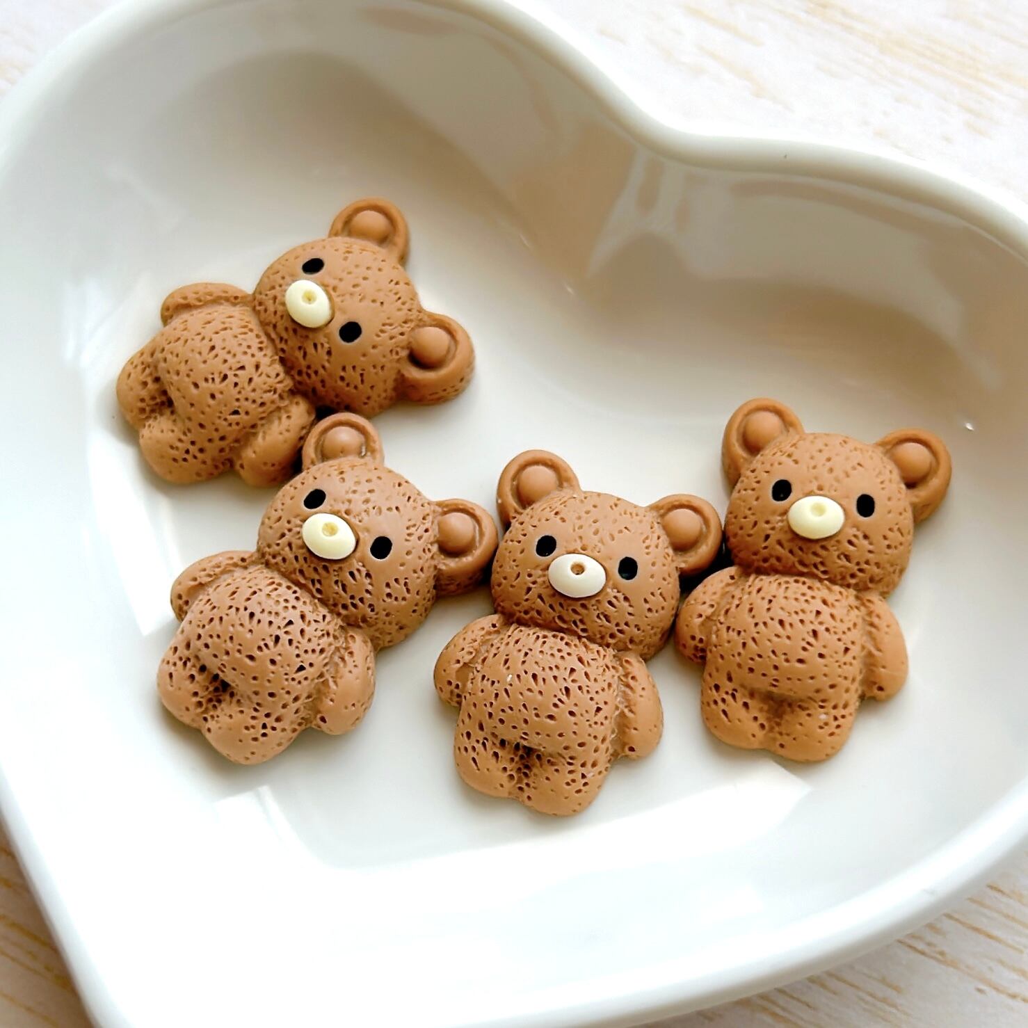 ビスケットくまのデコパーツ 4個セット (A09) / クマ ハンドメイドパーツ カボション