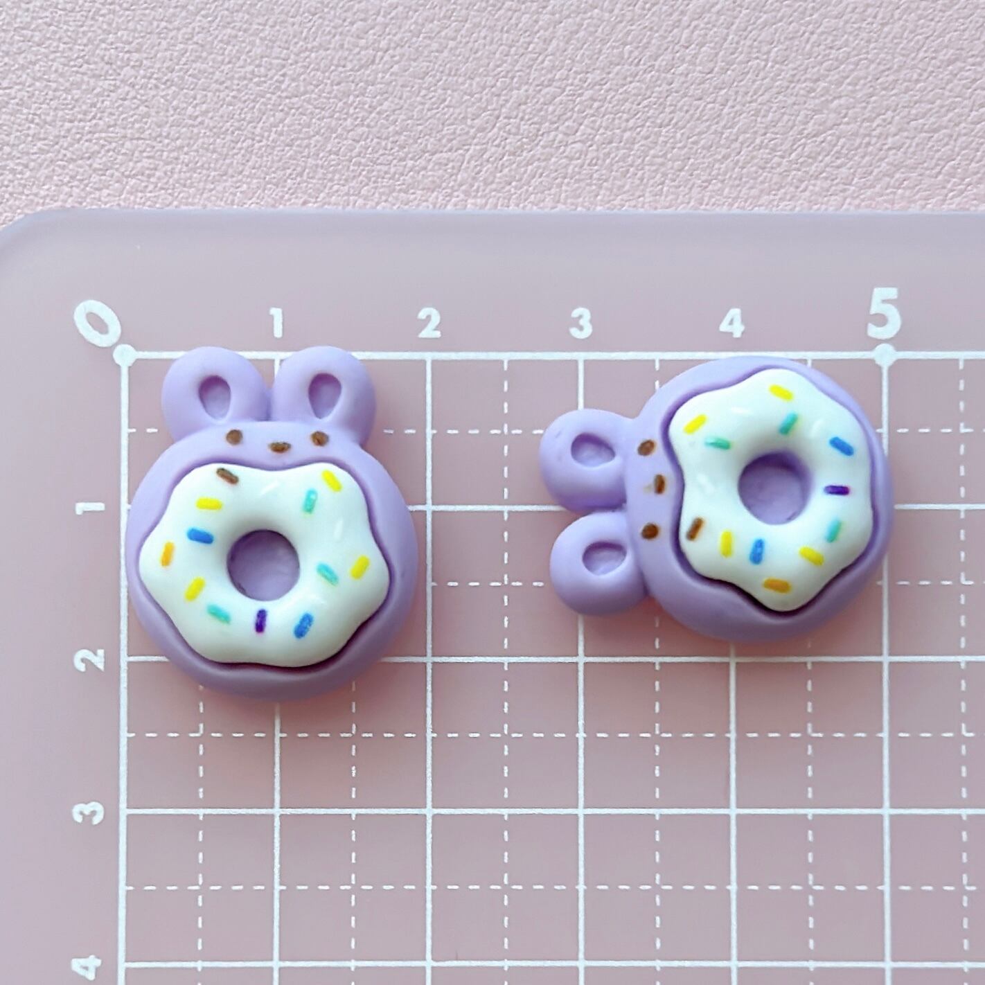 ドーナツうさぎのデコパーツ パープル 4個セット (A19)/ ウサギ ハンドメイドパーツ ホイップデコ うさちゃん カボション