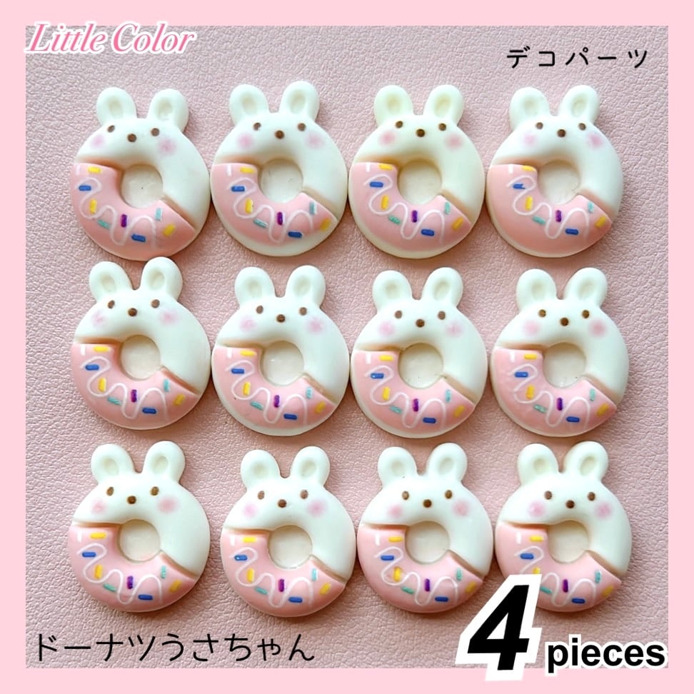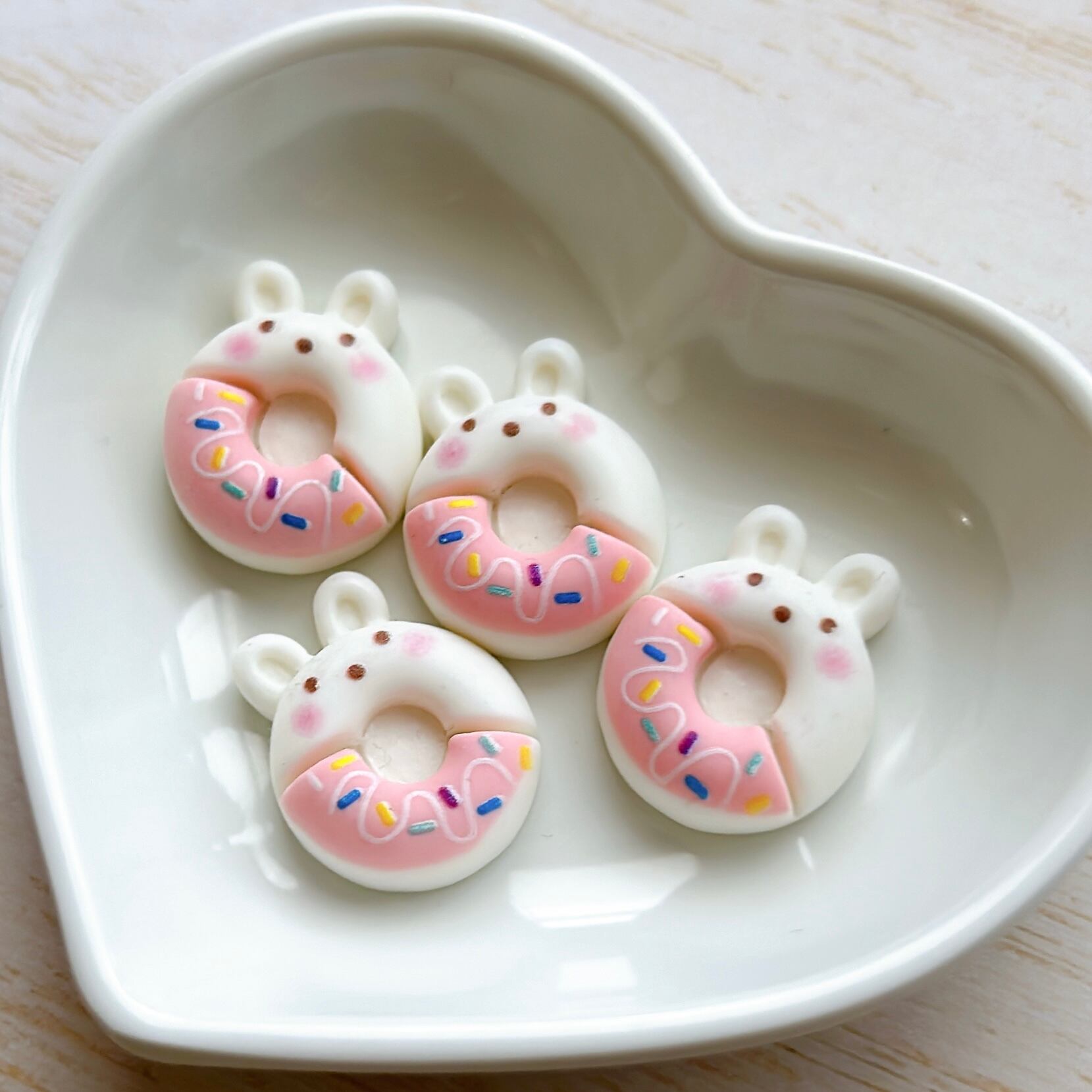 ドーナツうさぎのデコパーツ ピンク 4個セット (A20)/ ウサギ ハンドメイドパーツ ホイップデコ うさちゃん カボション