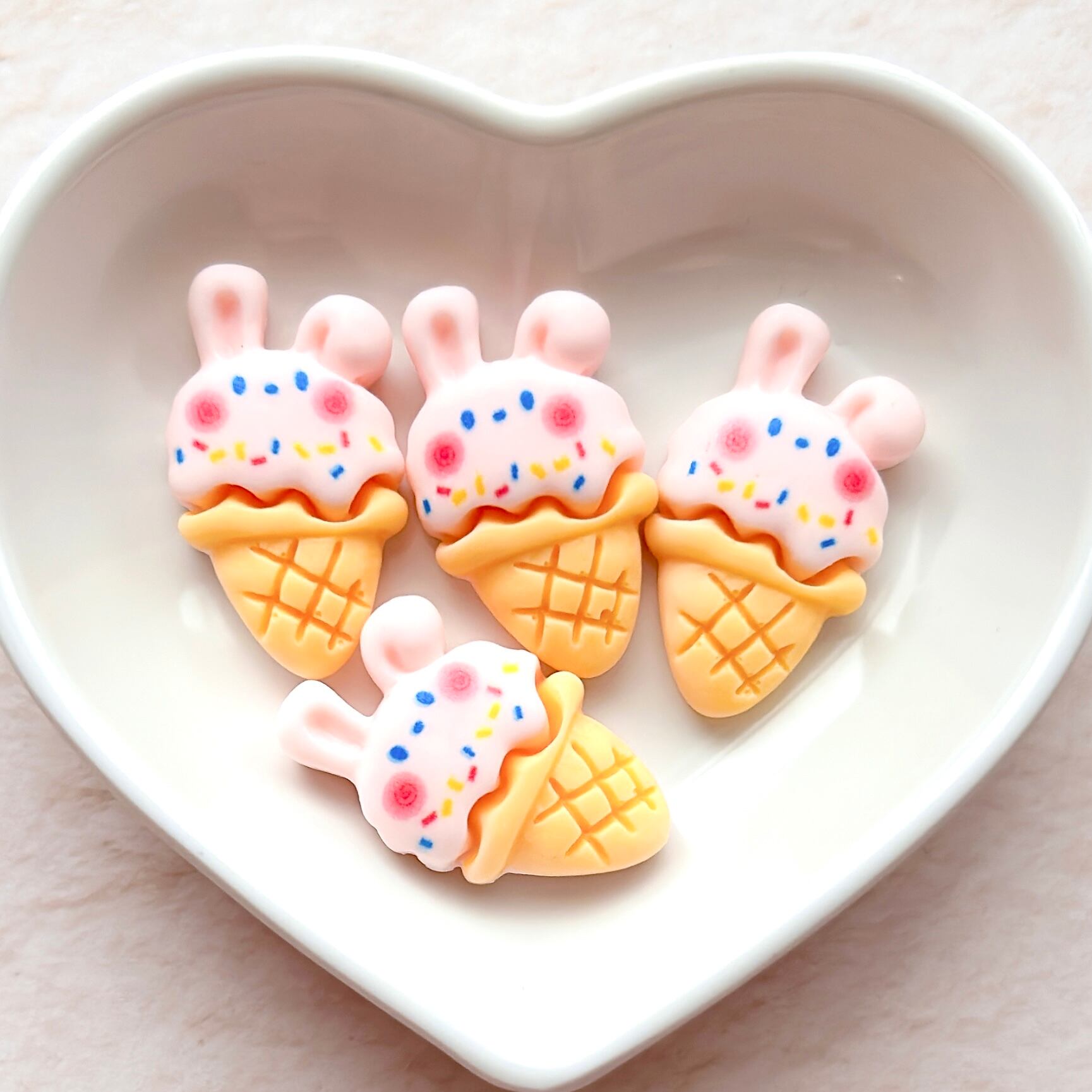 ソフトクリームうさちゃんのデコパーツ ピンク 4個セット (A26)/ ウサギ ハンドメイドパーツ ホイップデコ カボション うさぎ