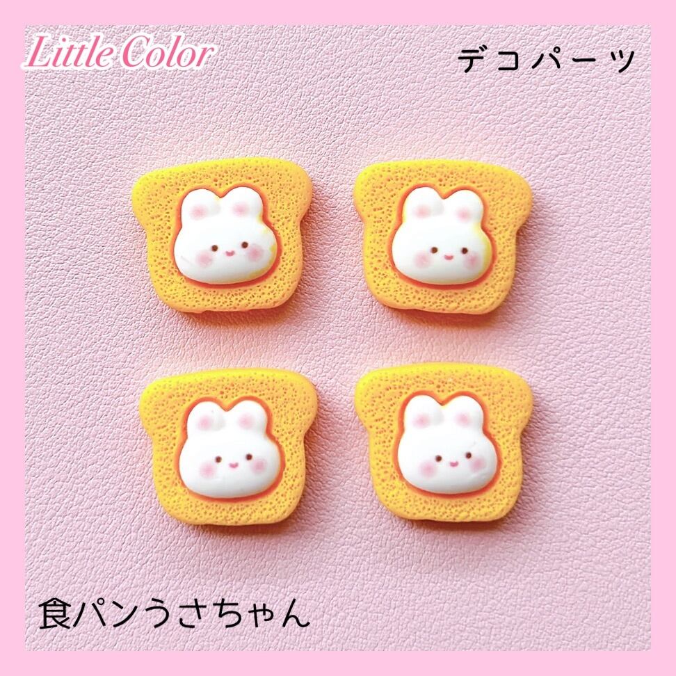 食パンうさちゃんのデコパーツ 4個セット (A27)/ ウサギ ハンドメイドパーツ ホイップデコ カボション