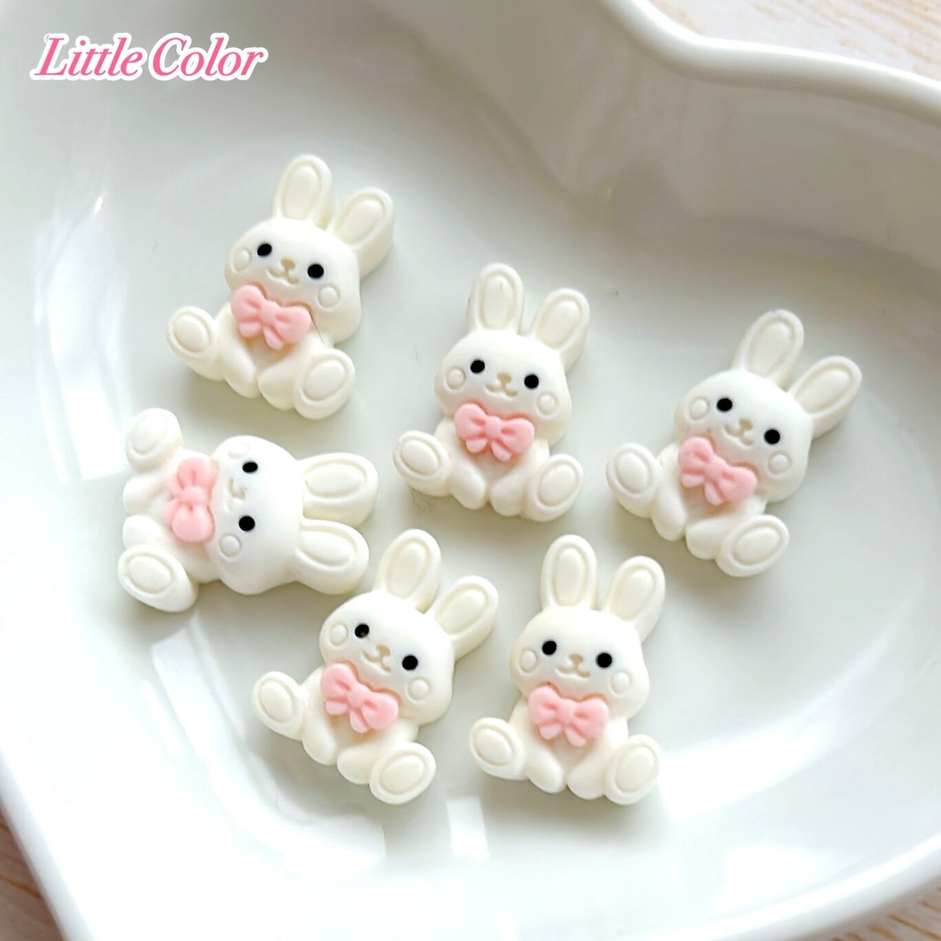 リボンうさちゃんのデコパーツ 6個セット (A36)/ ハンドメイドパーツ ホイップデコ カボション ウサギ
