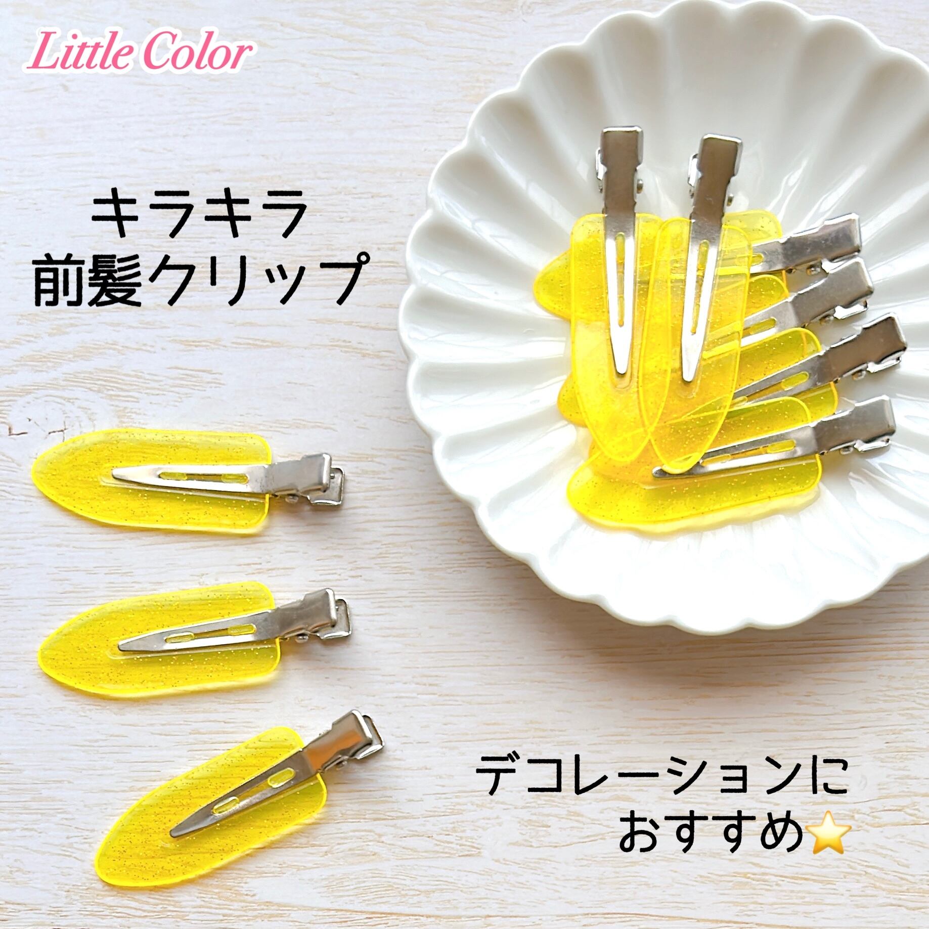 【4個】キラキラ前髪クリップ イエロー / デコレーション ホイップデコ レジン ハンドメイド用品 ヘアクリップ 推し活