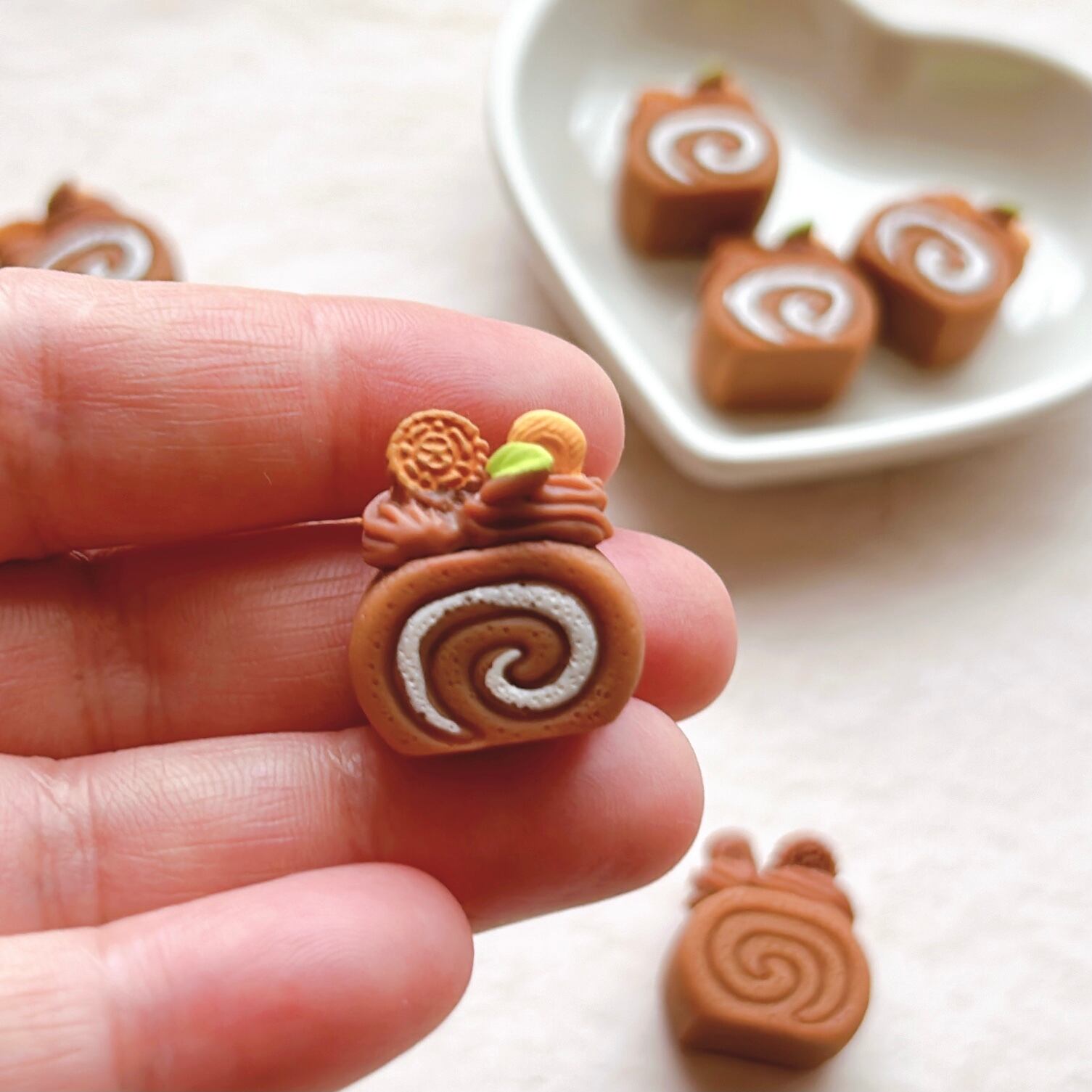 ロールケーキのデコパーツ ブラウン 4個セット/ハンドメイドパーツ 食べものパーツ ミニチュア