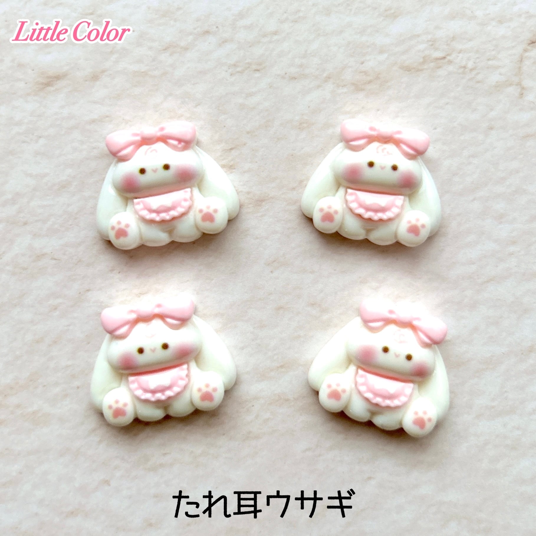 【4個】デコパーツ たれ耳うさちゃん リボンうさぎ ピンク/ ハンドメイドパーツ 動物パーツ ウサギ(E04)